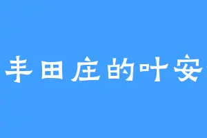 大丰田庄的叶安微